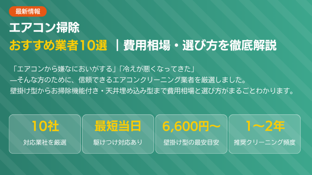 長野県でエアコン掃除業者をお探しの方必見。おすすめ業者10選を費用相場・保証・対応スピードで徹底比較。壁掛け型からお掃除機能付き・天井埋め込み型まで料金内訳も解説します。 -