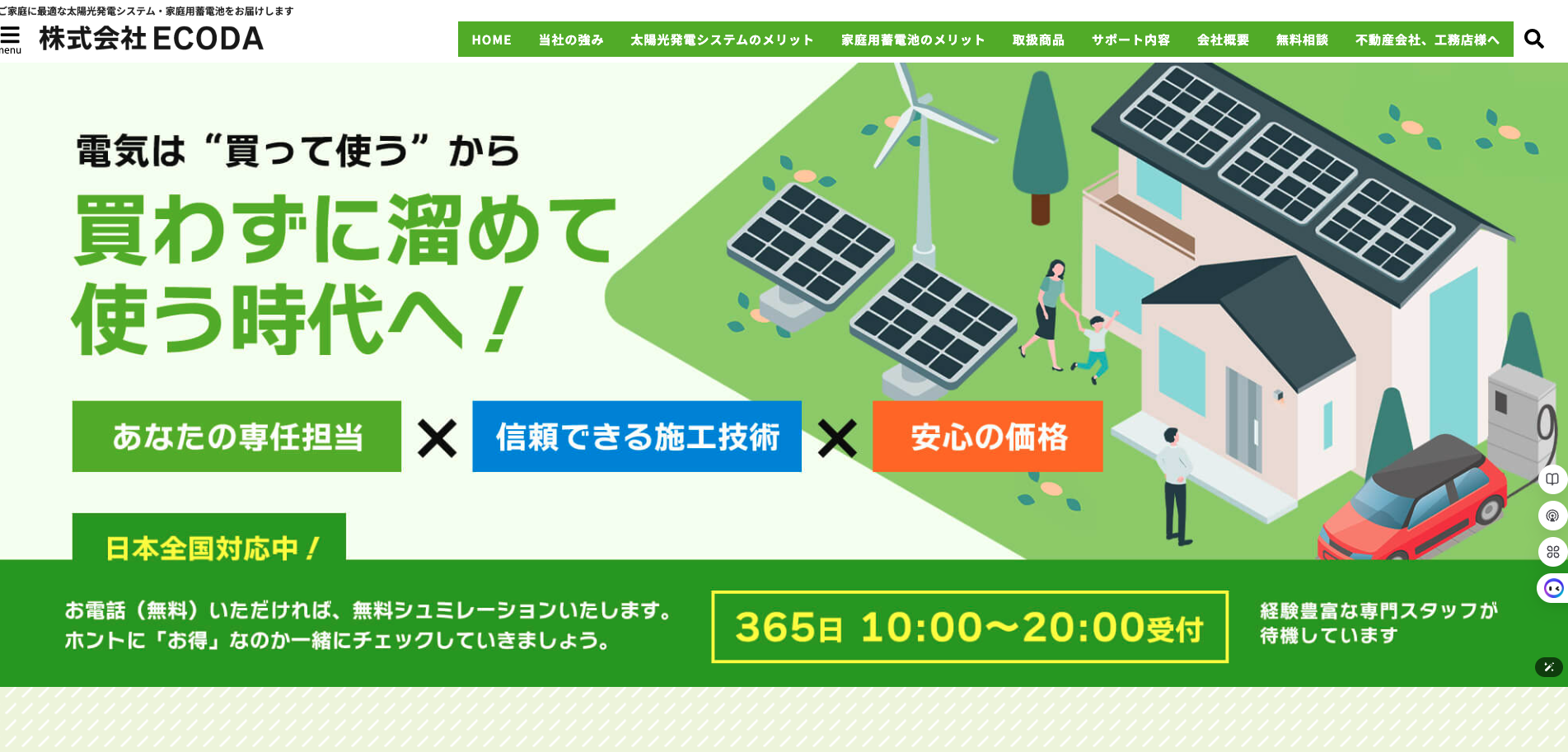 太陽光発電や蓄電池を検討している方には、ぜひECODAさんをおすすめします。
