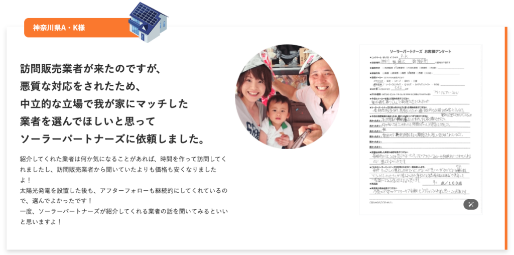 太陽光パネル、蓄電池について予備知識がない私たちにも細かく親身になって相談にのっていただきました。補助金もほぼ予定通りに取得でき、一層快適な暮らしができそうです。ありがとうございました。